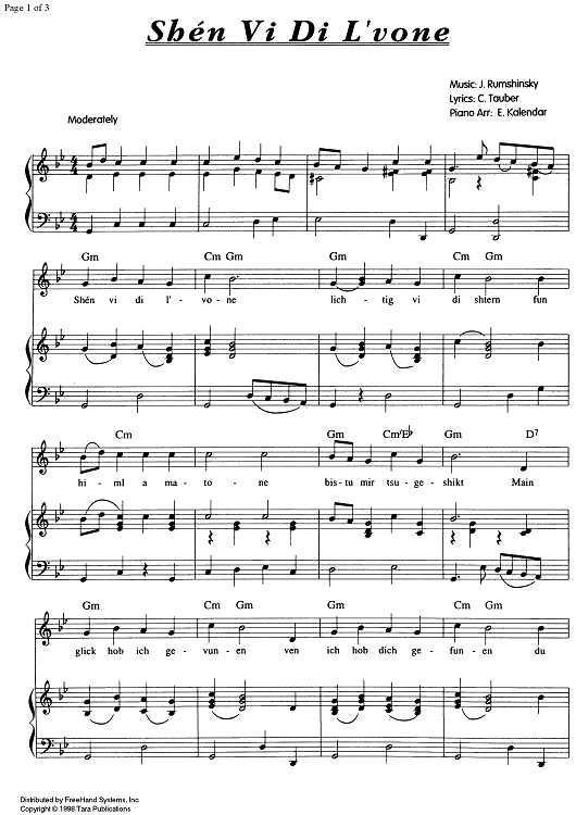 Digital Sheet Music for Shén Vi Di L'vone by , Edward Kalendar, J. Rumshinsky scored for Voice/Piano; id:343791