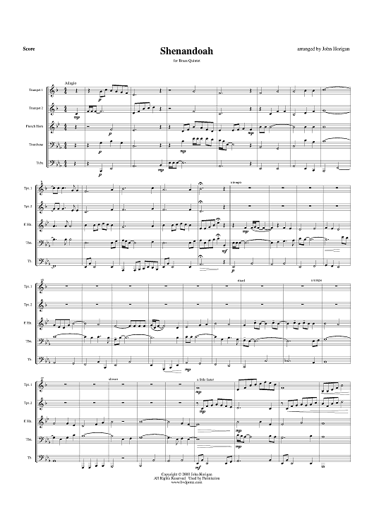 Digital Sheet Music for Shenandoah - Score by John Horigan scored for Brass Quintet; id:355123