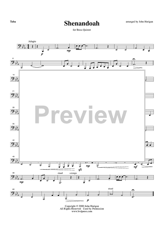 Digital Sheet Music for Shenandoah - Tuba by John Horigan scored for Brass Quintet; id:355128