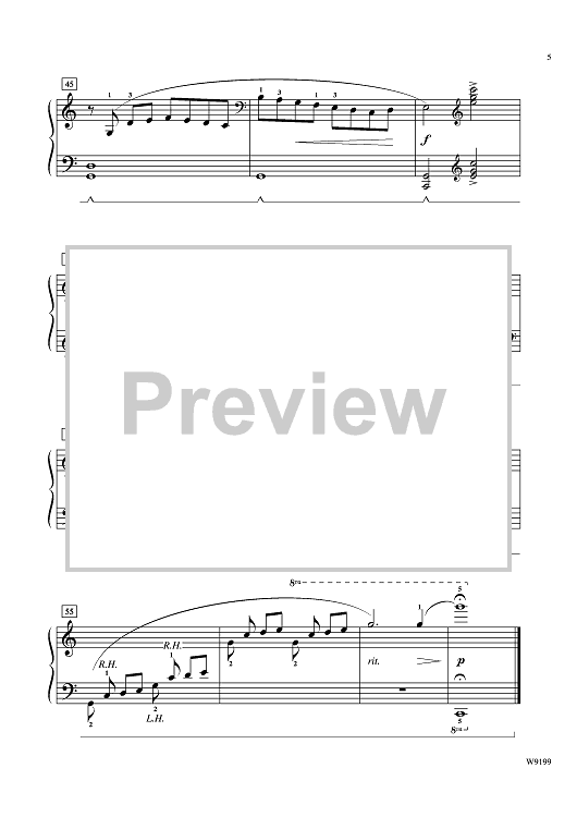 This lovely, expressive piece opens with a tribute to J.S. Bach's Prelude No.1, from Book 1 of the Well-tempered Clavier, then builds to a rich and powerful chordal section. These two musical ideas alternate throughout. The piece features legato pedal, R.H. scale passages, cross-hand arpeggios, and chord inversions in both hands.