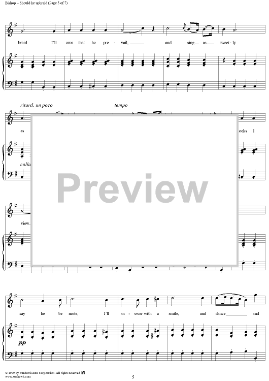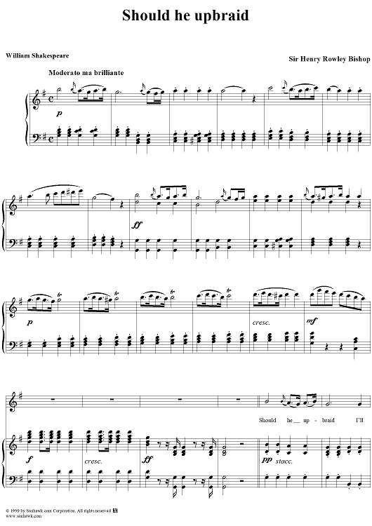Digital Sheet Music for Should He Upbraid by Henry Bishop, William Shakespeare scored for Voice/Piano; id:270220