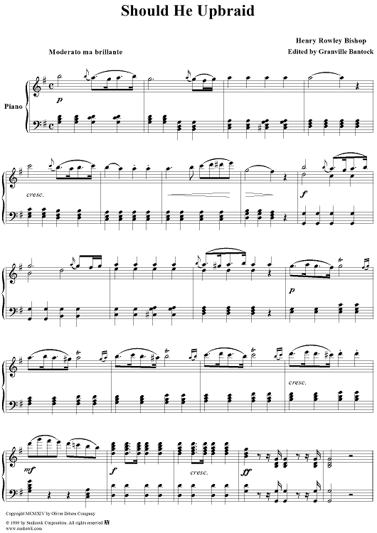 Digital Sheet Music for Should He Upbraid by Henry Bishop, Granville Bantock scored for Voice/Piano; id:274775