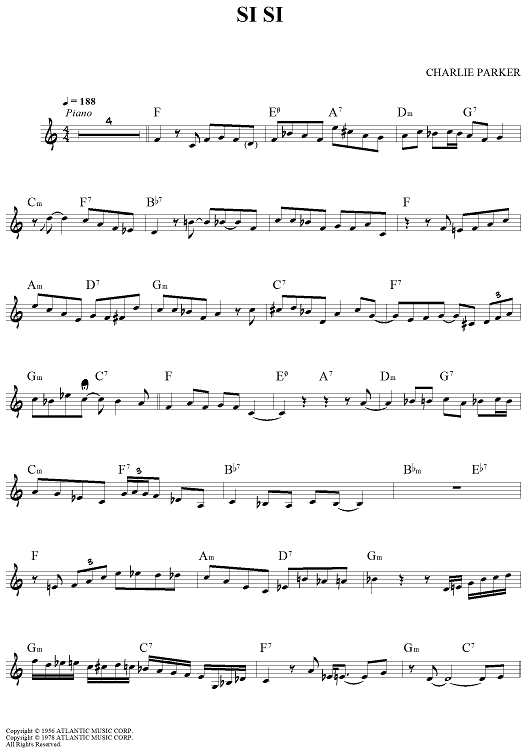 Digital Sheet Music for Si Si by Charlie Parker scored for Lead Sheet; id:444989