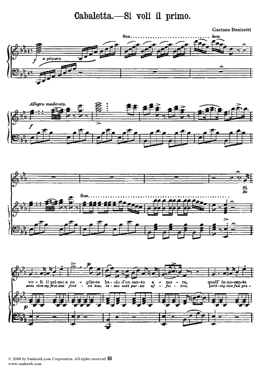 "Si voli il primo" Sheet Music by Gaetano Donizetti
