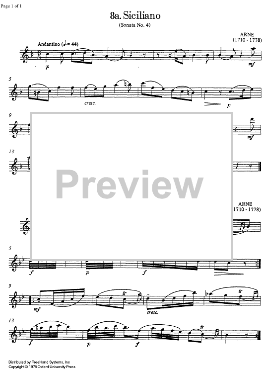 Digital Sheet Music for Siciliano (Sonata No. 4) and Minuet (Sonata No. 3) - Flute by Thomas Arne, Watson Forbes, Alan Frank scored for Flute/Piano; id:349201