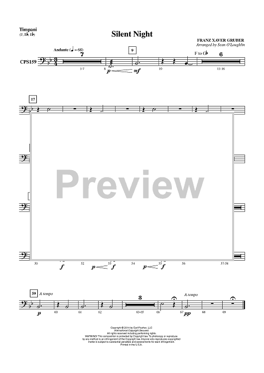 Digital Sheet Music for Silent Night - Timpani by Franz Xaver Gruber, Sean O'Loughlin scored for Concert Band; id:451165