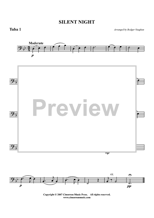 Digital Sheet Music for Silent Night - Tuba 1 by Franz Xaver Gruber, Rodger Vaughan scored for Tuba Quartet; id:416510