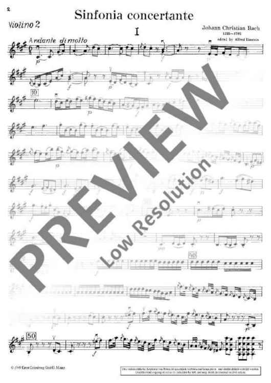 "Sinfonia concertante A major - Violin Ii Rip." Sheet Music by Johann Christian Bach