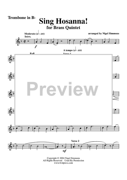 "Sing Hosanna! - Trombone" Sheet Music by Traditional