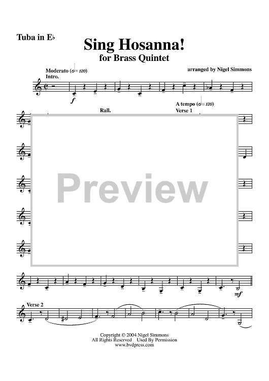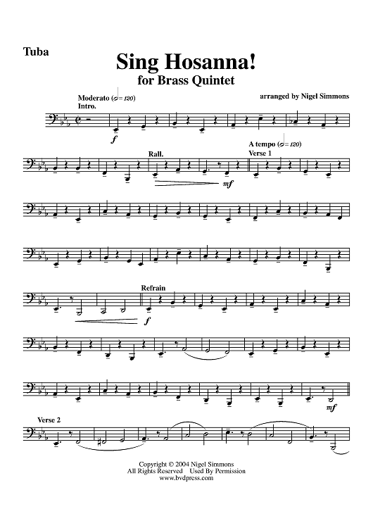 "Sing Hosanna! - Tuba" Sheet Music by Traditional