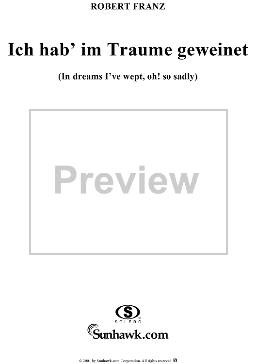 "Six Lieder, op. 25, no. 3: In Dreams I've Wept, oh! so sadly (Ich hab' im Traume geweinet)" Sheet Music by Robert Franz