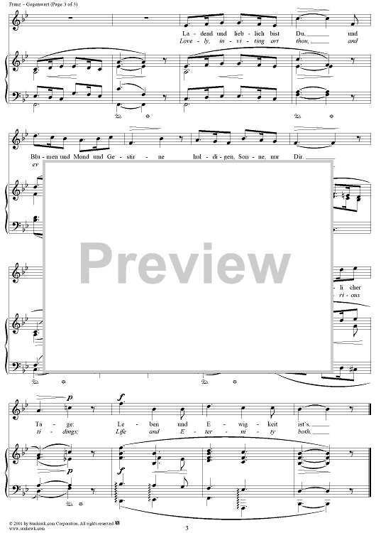 Digital Sheet Music for Six Lieder, op. 33, no. 2: Presence (Gegenwart) by Johann Wolfgang von Goethe, Robert Franz scored for Voice/Piano; id:269133