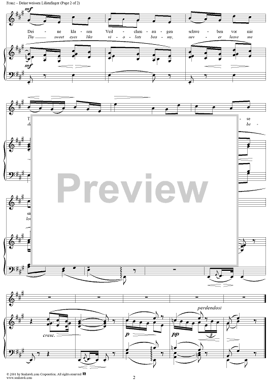 Digital Sheet Music for Six Lieder, op. 34, no. 2: Thy Dear Fingers (Deine weissen Lilienfinger) by Robert Franz, Heinrich Heine scored for Voice/Piano; id:269303