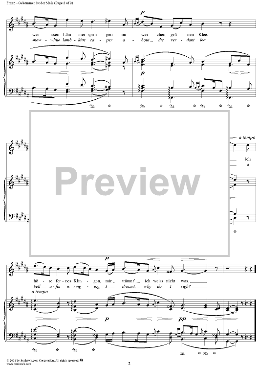 Digital Sheet Music for Six Lieder, op. 34, no. 6: He Comes With Vernal Flowers (Gekommen ist der Maie) by Robert Franz, Heinrich Heine scored for Voice/Piano; id:268906