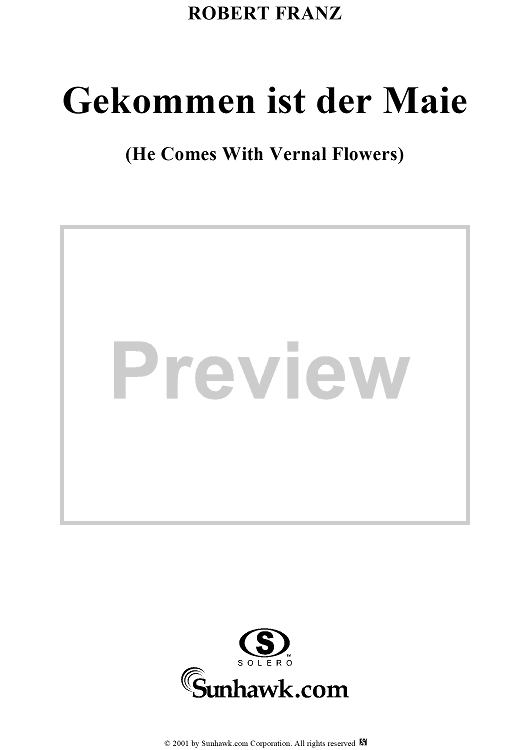 "Six Lieder, op. 34, no. 6: He Comes With Vernal Flowers (Gekommen ist der Maie)" Sheet Music by Robert Franz