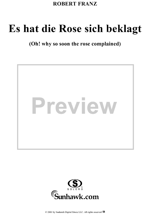 Digital Sheet Music for Six Songs from the East, op. 42, no. 5: Oh! Why So Soon the Rose Complained (Es hat die Rose sich beklagt) by Robert Franz, Mirza-Schaffy scored for Voice/Piano; id:268918