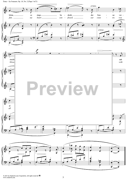 Digital Sheet Music for Six Songs, Op. 16, No. 2: In Summer (Im Sommer) by Johann Wolfgang von Goethe, Robert Franz scored for Voice/Piano; id:268896