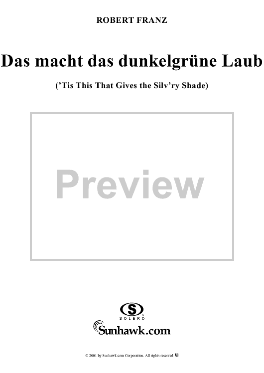 "Six Songs, op. 20, no. 5: 'Tis This That Gives the Silv'ry Shade (Das macht das dunkelgrüne Laub)" Sheet Music by Robert Franz