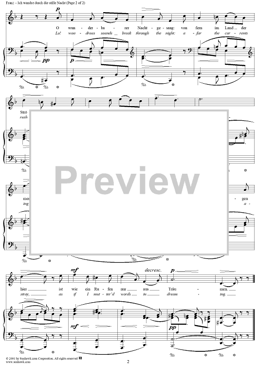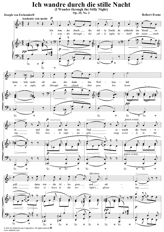 Digital Sheet Music for Six Songs, op. 35, no. 2: I Wander Through the Stilly Night (Ich wandre durch die stille Nacht) by Joseph von Eichendorff, Robert Franz scored for Voice/Piano; id:268913