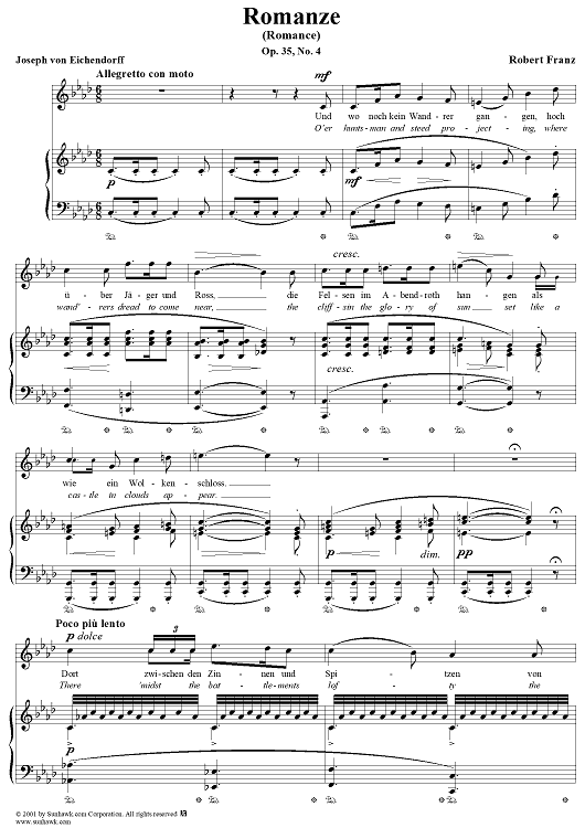 Digital Sheet Music for Six Songs, op. 35, no. 4: Romance by Joseph von Eichendorff, Robert Franz scored for Voice/Piano; id:269151