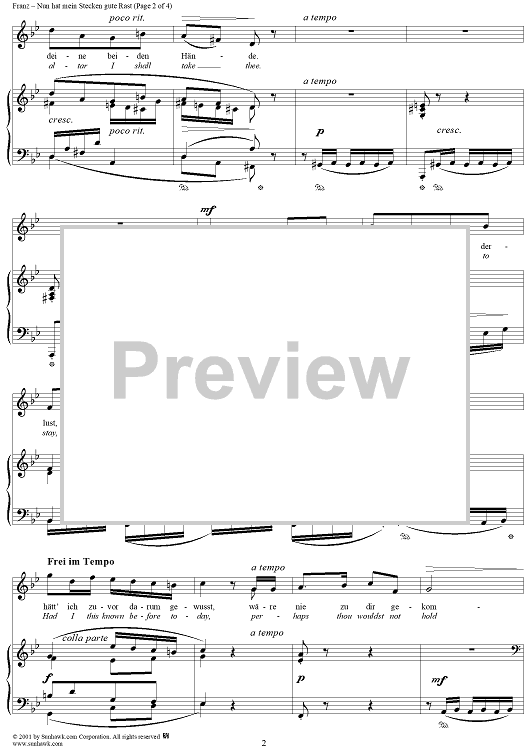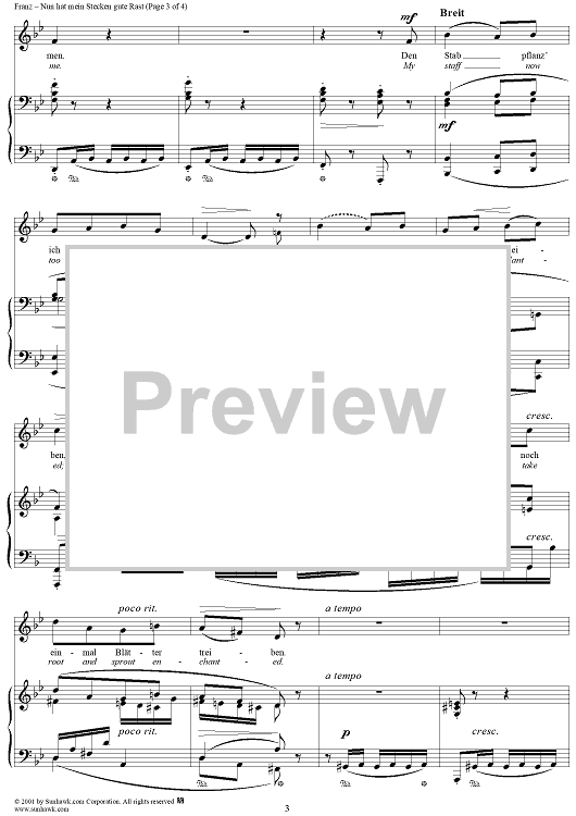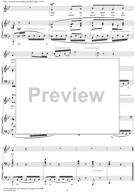 Digital Sheet Music for Six Songs, op. 36, no. 6: Now My Good Staff In Peace May Rest (Nun hat mein Stecken gute Rast) by Robert Franz, Karl Wilhelm Osterwald scored for Voice/Piano; id:268884