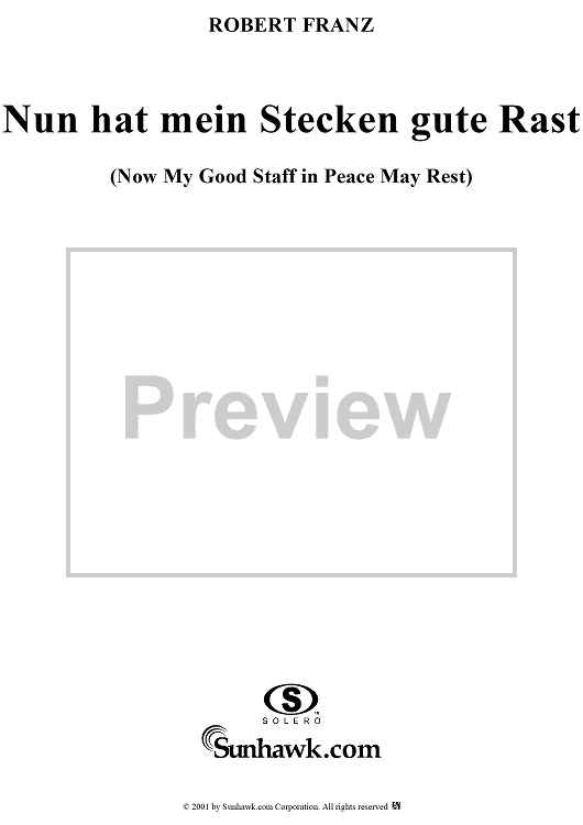 "Six Songs, op. 36, no. 6: Now My Good Staff In Peace May Rest (Nun hat mein Stecken gute Rast)" Sheet Music by Robert Franz
