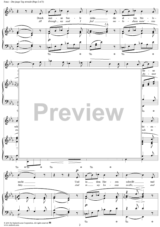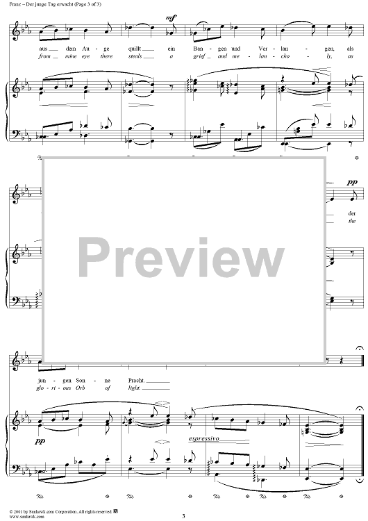 Digital Sheet Music for Six Songs, op. 7, no. 1: The Youthful Day Awakes (Der junge Tag erwacht) by Robert Franz, Karl Wilhelm Osterwald scored for Voice/Piano; id:268935