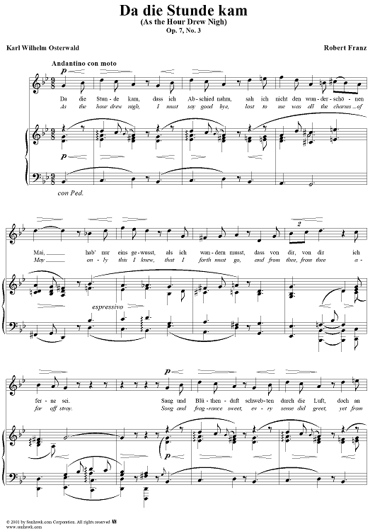 Digital Sheet Music for Six Songs, op. 7, no. 3: As the Hour Drew Nigh (Da die Stunde kam) by Robert Franz, Karl Wilhelm Osterwald scored for Voice/Piano; id:269112