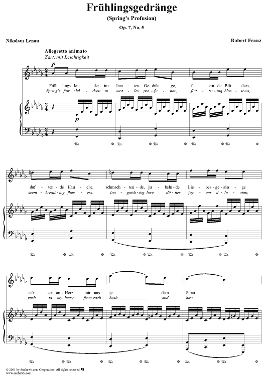 Digital Sheet Music for Six Songs, op. 7, no. 5: Spring's Profusion (Frühlingsgedränge) by Robert Franz, Nikolaus Lenau scored for Voice/Piano; id:269145