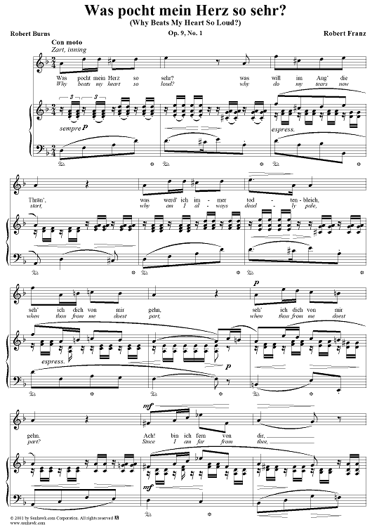 Digital Sheet Music for Six Songs, op. 9, no. 1: Why Beats My Heart So Loud? (Was pocht mein Herz so sehr?) by Robert Burns, Robert Franz scored for Voice/Piano; id:269274