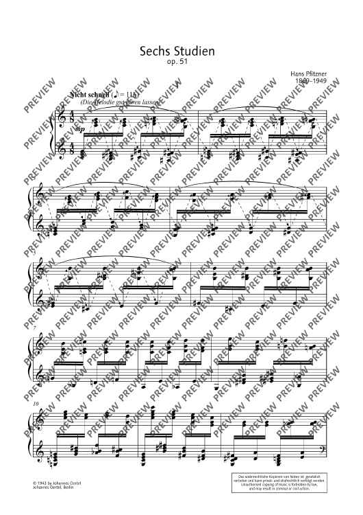 Digital Sheet Music for Six Studies by Hans Pfitzner scored for Piano; id:498487