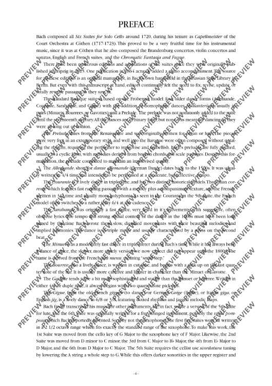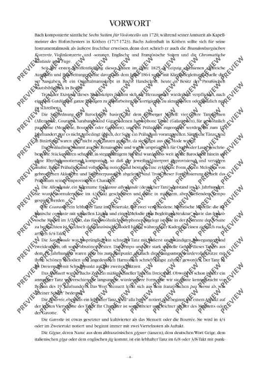 "Six Suites for violoncello solo" Sheet Music by Johann Sebastian Bach