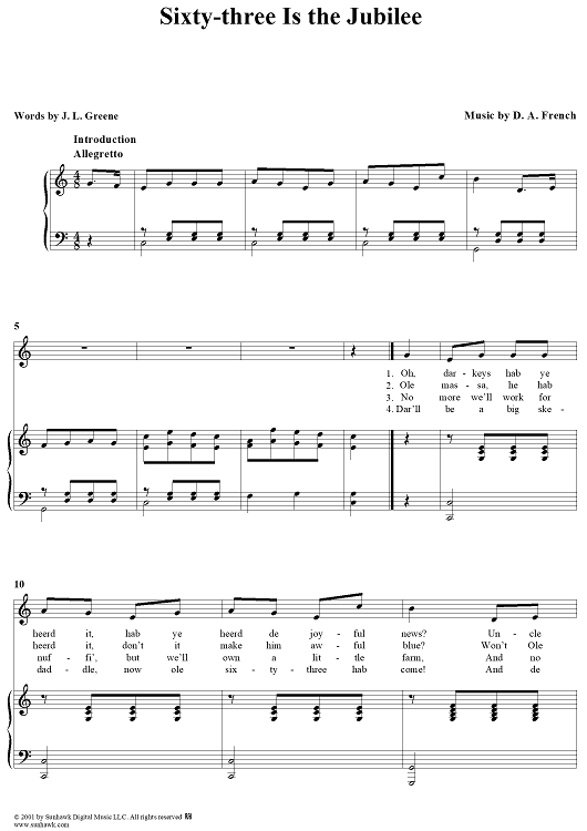 Digital Sheet Music for Sixty-three Is the Jubilee by D. A. French, J. L. Green scored for Piano/Vocal; id:269488