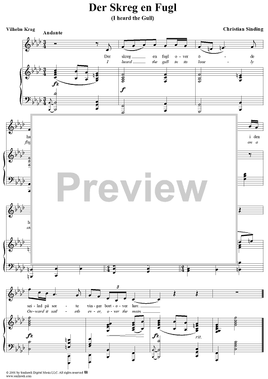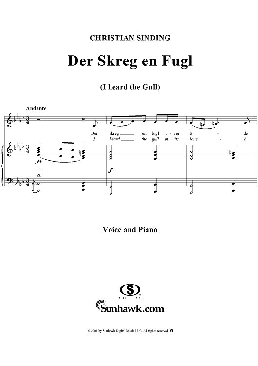 Digital Sheet Music for Skreg en Fugl (I heard the Gull) by Christian Sinding, Vilhelm Krag scored for Voice/Piano; id:257916