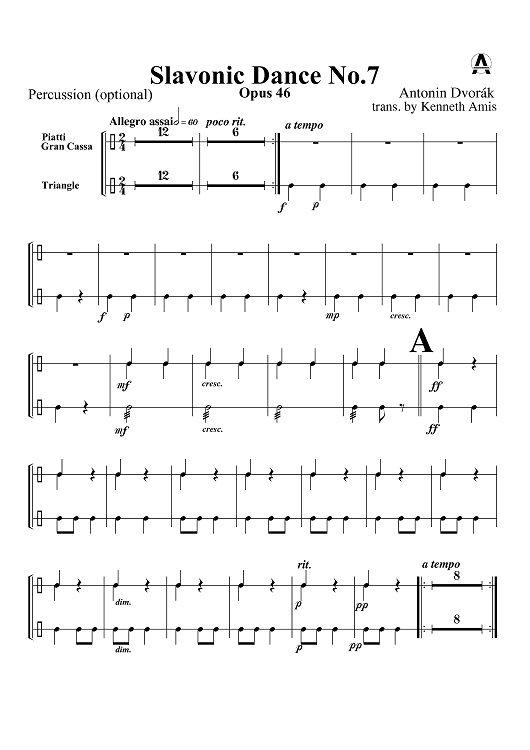 "Slavonic Dance No.7, Op.46 - Percussion (opt.)" Sheet Music by Antonín Dvorák