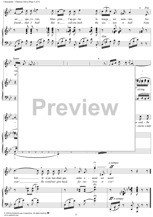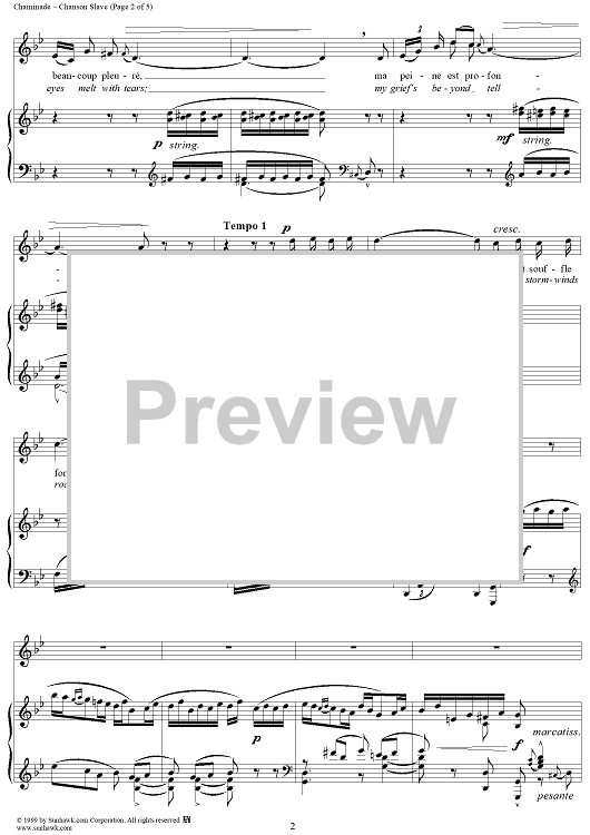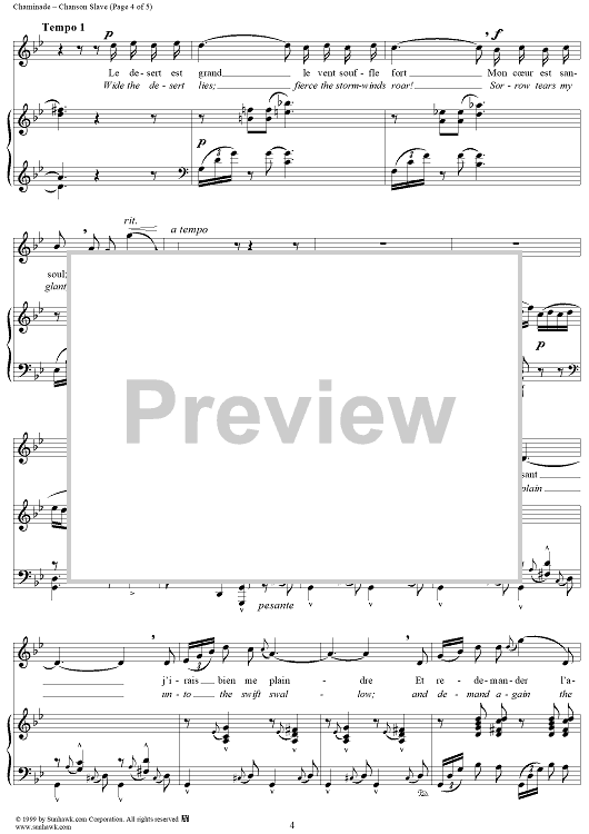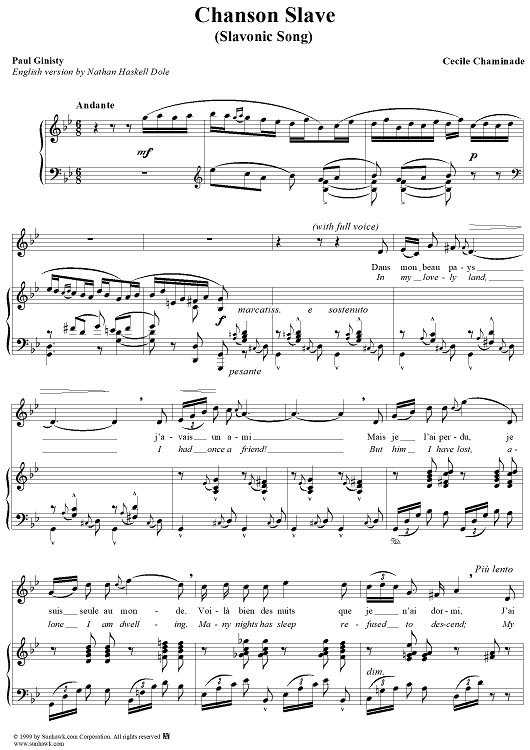 Digital Sheet Music for Slavonic Song (Chanson Slave) by Cécile Chaminade, Paul Ginisty scored for Voice/Piano; id:273275