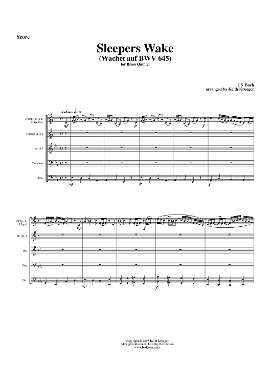 "Sleepers Wake - Score" Sheet Music by Johann Sebastian Bach