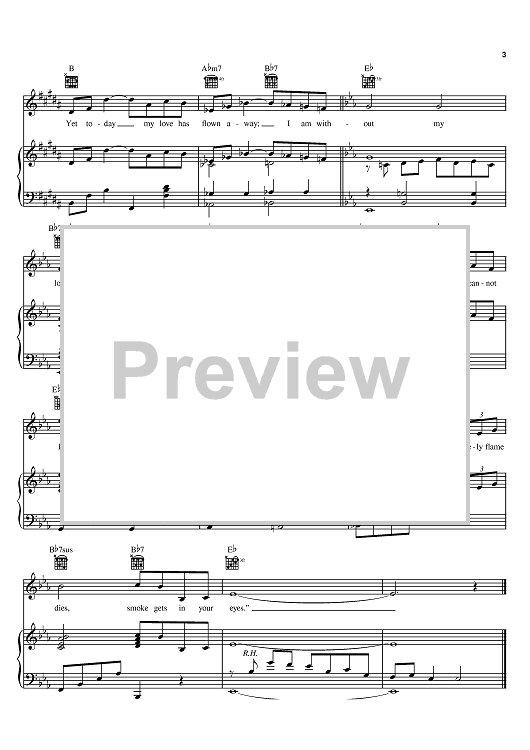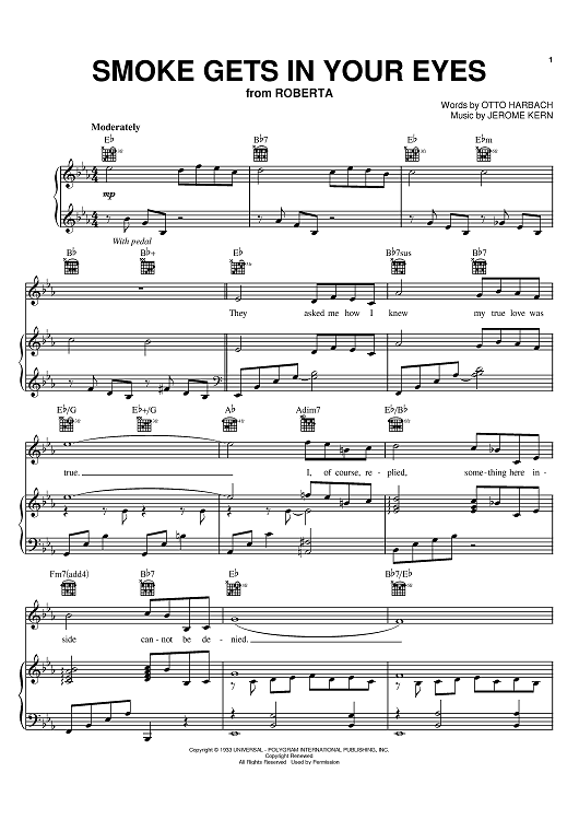 Digital Sheet Music for Smoke Gets In Your Eyes by Nat King Cole, Jerome Kern, Otto Harbach, Dinah Washington, The Platters scored for Piano/Vocal/Chords; id:375141