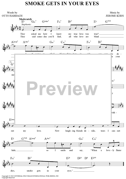 Digital Sheet Music for Smoke Gets In Your Eyes by Jerome Kern, Otto Harbach scored for Lead Sheet; id:457256