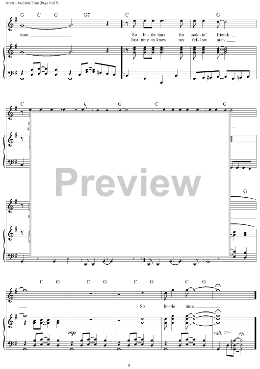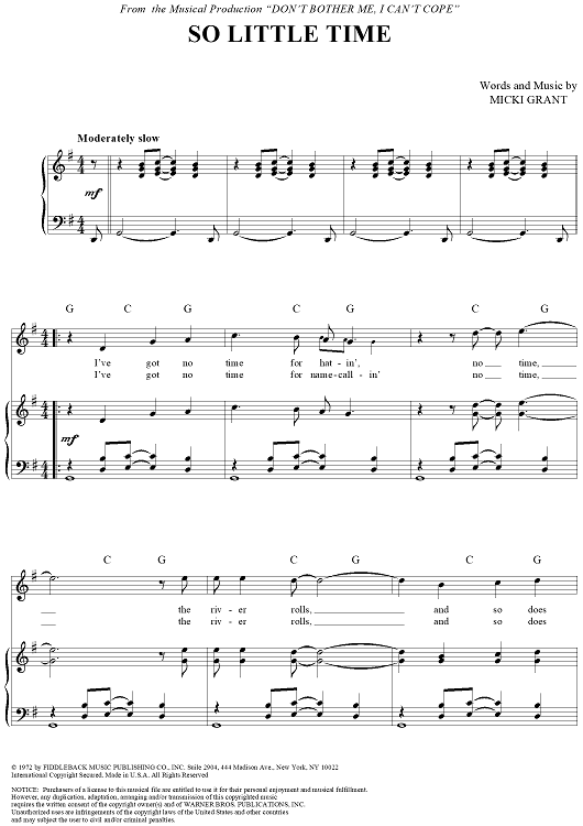 Digital Sheet Music for So Little Time by Micki Grant scored for Piano/Vocal/Chords; id:267596