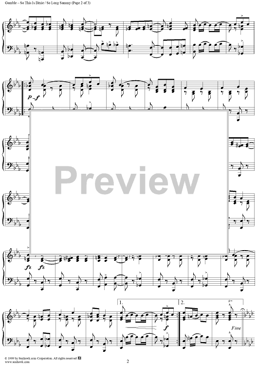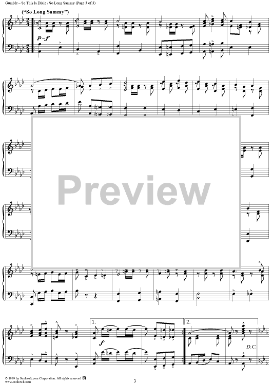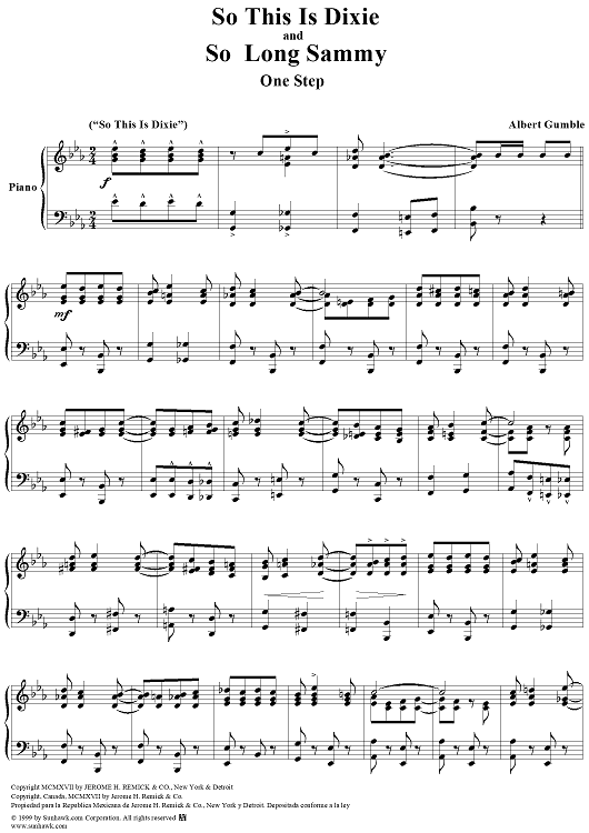 Digital Sheet Music for So This Is Dixie / So Long Sammy (One Step) by Albert Gumble scored for Piano/Vocal; id:267550