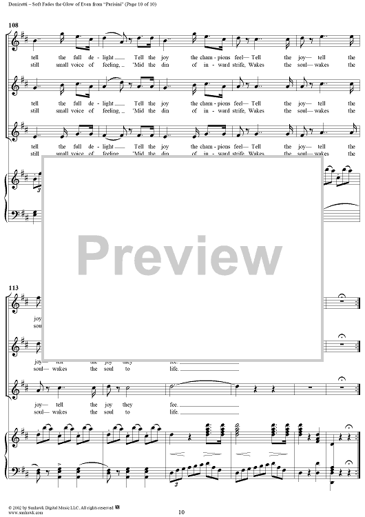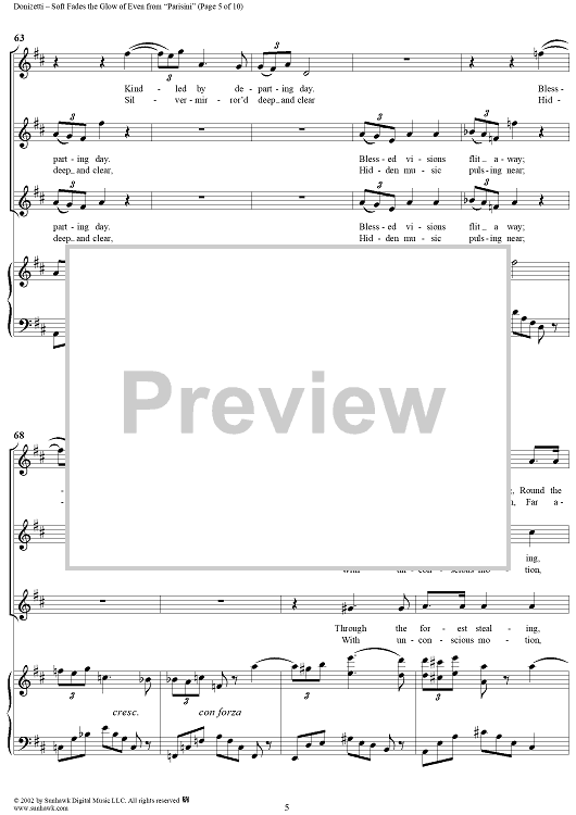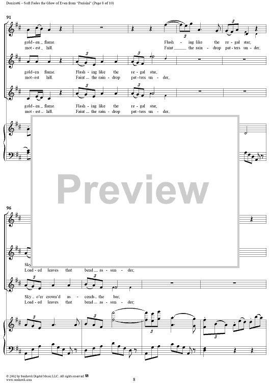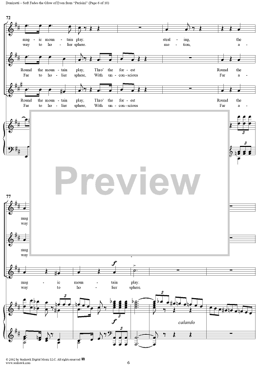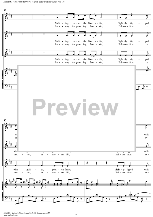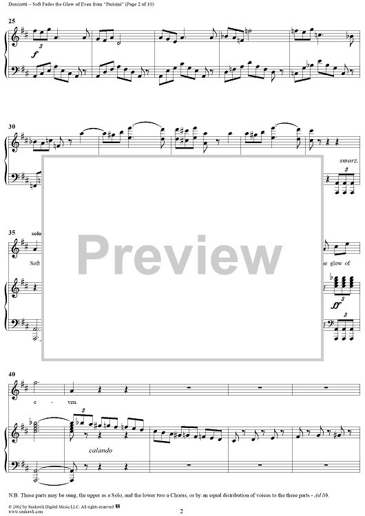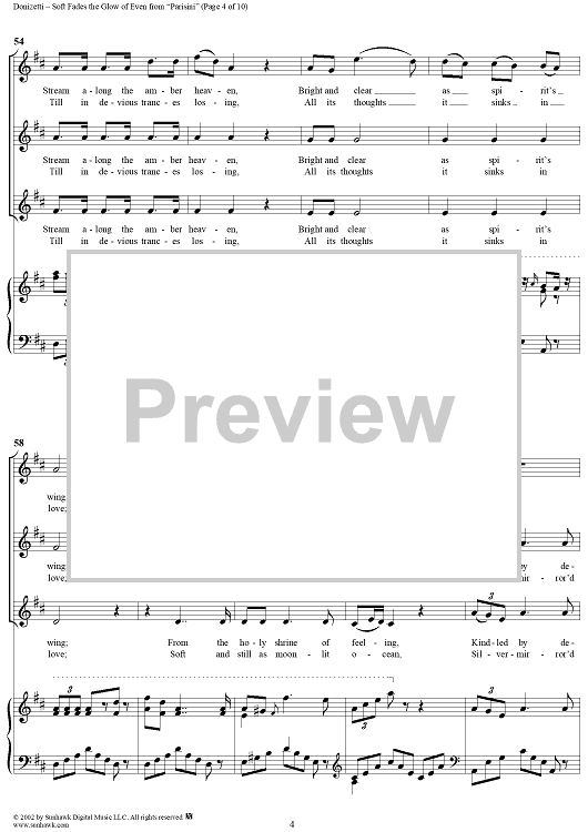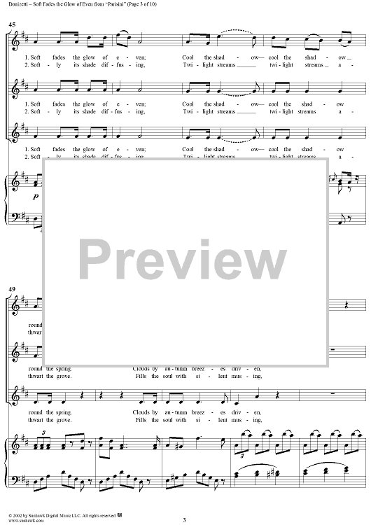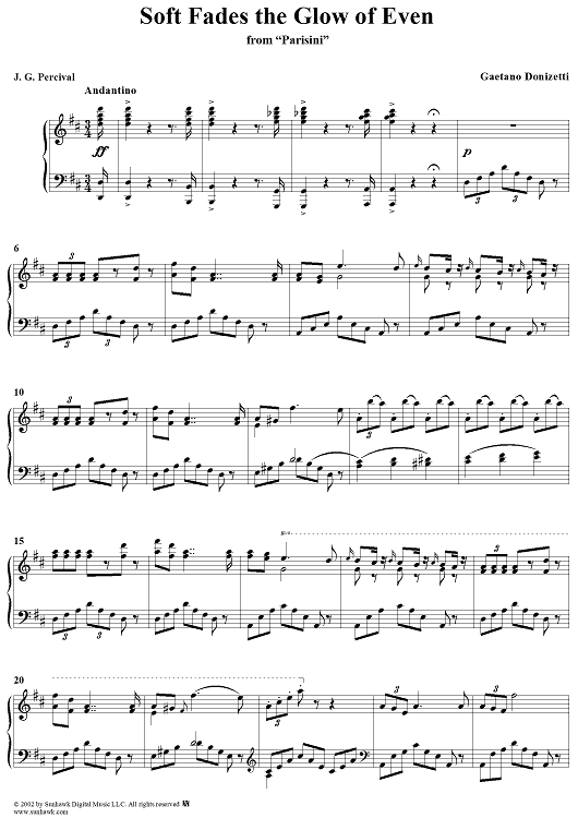 "Soft fades the glow of even" Sheet Music by Gaetano Donizetti