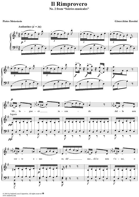 Digital Sheet Music for Soirées musicales, No. 2: Il rimprovero by Gioachino Rossini scored for Voice/Piano; id:255572