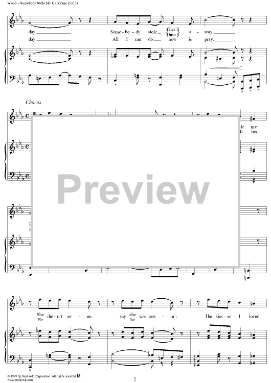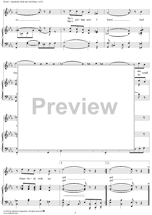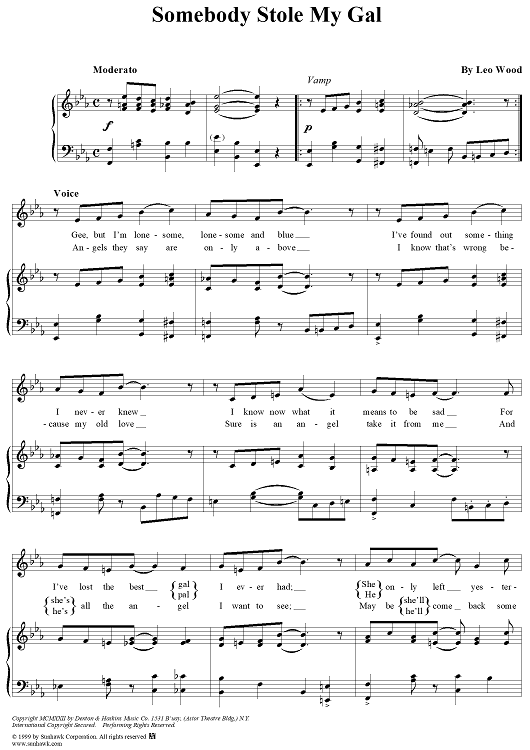 Digital Sheet Music for Somebody Stole My Gal by Leo Wood scored for Piano/Vocal; id:249823