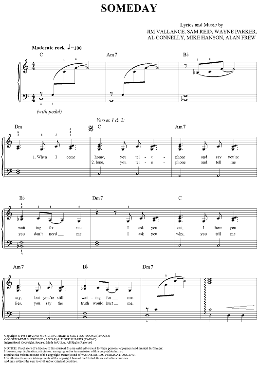 Digital Sheet Music for Someday by Sam Reid, Wayne Parker, Al Connelly, Mike Hanson, Alan Frew, Jim Vallance, Glass Tiger scored for Easy Piano/Vocal; id:265026