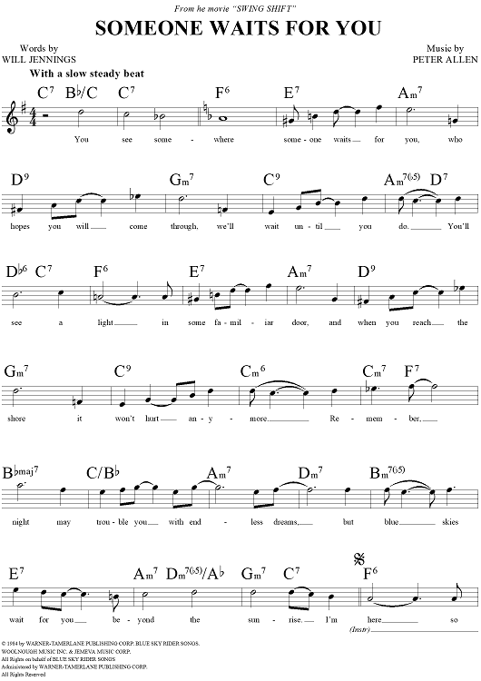 Digital Sheet Music for Someone Waits For You by Will Jennings, Peter Allen scored for Lead Sheet; id:277519