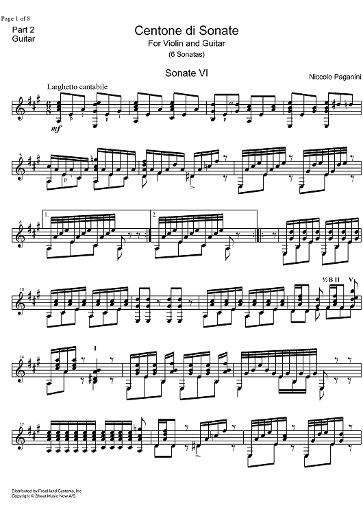 "Sonata A Major - Guitar" Sheet Music by Niccolò Paganini