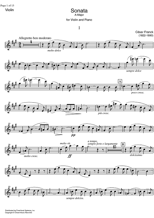 Digital Sheet Music for Sonata A Major - Violin by César Franck scored for Violin/Piano; id:329620