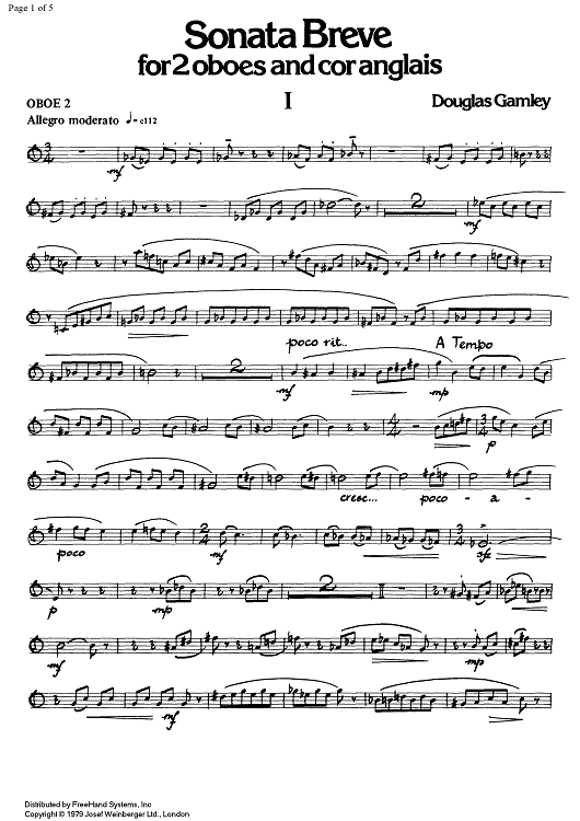 Digital Sheet Music for Sonata Breve - Oboe 2 by Douglas Gamley scored for 2 Oboes/English Horn; id:335954