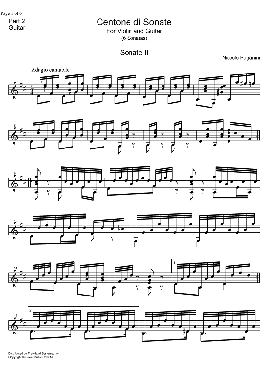 "Sonata D Major - Guitar" Sheet Music by Niccolò Paganini